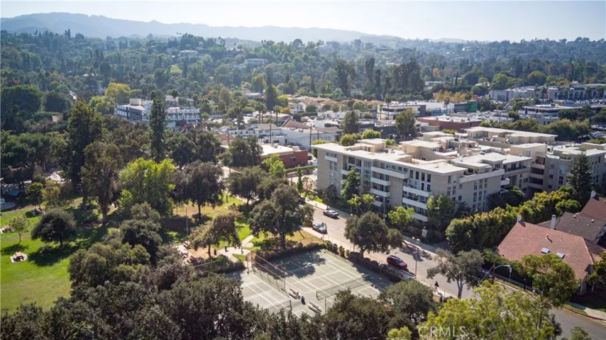 Welcome to Exclusive Encino Park West, a premier full-service building perfectly positioned across from the Encino Park. This elegant single-level residence offers luxury living in one of Encino’s most sought-after buildings. Enter through double doors into a grand three-story foyer with marble floors and expansive windows that fill the space with natural light. The open-concept living and dining area features a built-in buffet, ideal for both everyday comfort and entertaining. The remodeled kitchen is equipped with stainless steel appliances, a Frigidaire cooktop, Bosch dishwasher, granite countertops, recessed lighting, and a convenient in-unit washer and dryer. In the private bedroom wing, the spacious primary suite includes two walk-in closets, a seated vanity and dressing area, and a spa-inspired bath with soaking tub and oversized shower. A secondary bedroom, den, or office with its own walk-in closet and adjacent ¾ bath offers excellent flexibility for guests or workspace. Enjoy resort-style amenities including a sparkling pool and spa, fitness center with sauna, and a social room with full kitchen perfect for entertaining. The building provides 24/7 concierge and doorman service, a closed-circuit security system, guest parking at the front entrance for easy access and unloading, full wheelchair accessibility, and an EV charging station at the front of the building. HOA dues include cable, internet, water, trash, earthquake insurance, elevator maintenance, two garage parking spaces, and on-site management. Ideally located near Encino Charter Elementary, Ventura Boulevard’s dining and boutiques, Encino Park’s playground, pickleball and basketball courts, with easy freeway access to the Westside and LAX.
