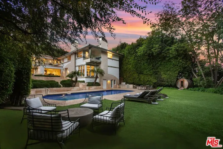 Beverly Hills Tennis Court Estate property unlike anything you’ve seen, hidden behind walls, gates & mature trees on over an acre of perfectly manicured park-like grounds in the prime foothills of Beverly Hills. Hosting a rich & elite Hollywood pedigree, up a long driveway on a knoll basking in the sun, sits this entirely reimagined home, colorfully curated by designer Angie Socas Coppel. Each room with its own joyful, lively and inspiring theme with an open floor plan with multiple spaces for entertaining. The main floor features large living spaces, a renovated chef’s kitchen with family room, staff quarters and office opening to an outdoor lounge, with Dining and Living rooms opening to the pool and grounds. The 2nd-story consists of three generous bedrooms plus a full primary suite with separate office, lounge, dual bathrooms, dual walk-in closets & French doors that open to a private terrace overlooking the stunning grounds. The sprawling grounds hold a guest house, fully equipped gym, a large pool with separate spa, sauna and a serene, private & sunken championship tennis court. The motor court has parking for up to 25 cars and the property is dialed in with a smart house system, full cameras & security complete with hotel like amenities throughout. A prime compound in one of the world’s most desirable locations.