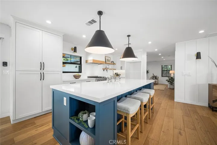WELCOME TO YOUR DREAM HOME! 11822 Harrisburg Road offers the perfect blend of fine craftsmanship and modern convenience. Situated on an oversized 8,162 sq. ft. lot in one of Rossmoor’s most desirable interior tract locations, this stunning home features 3 bedrooms, 3 bathrooms, and 2,151 sq. ft. of living space. Fully remodeled and expanded down to the studs, the home embraces true open-concept living. The chef’s kitchen boasts custom-built cabinetry, quartz countertops, tile backsplash, white oak floating shelves, and a custom hood vent. A large island with a farmhouse sink anchors the kitchen, living, and dining areas—ideal for entertaining family and friends. The home’s three bedrooms include dual primary suites, each with a custom walk-in closet, plus an additional guest bedroom. A cozy family room with beautiful built-in cabinetry sits at the heart of the home, while the stylishly updated laundry room features Tiffany blue shaker cabinets, a laundry sink, and ample storage.The detached bonus room, equipped with a mini-split system for heating and air, offers endless flexibility—perfect as a home office, playroom, or guest suite. Smart home features include a Brilliant Smart Home Control system, Sonos built-in sound, and high-definition security cameras. Additional upgrades include board and batten wall paneling, European oak engineered hardwood flooring, Andersen dual-pane windows, tankless water heater, and recessed lighting throughout. The backyard is beautifully designed for outdoor living, with a large Alumawood patio cover featuring recessed lighting, ceiling fans, and patio heaters. Gorgeous paver stone walkways are surrounded by fruit trees and lush privacy landscaping. Located within walking distance of Rossmoor Elementary and the award-winning Los Alamitos School District—don’t miss your chance to make this house your NEW HOME!
