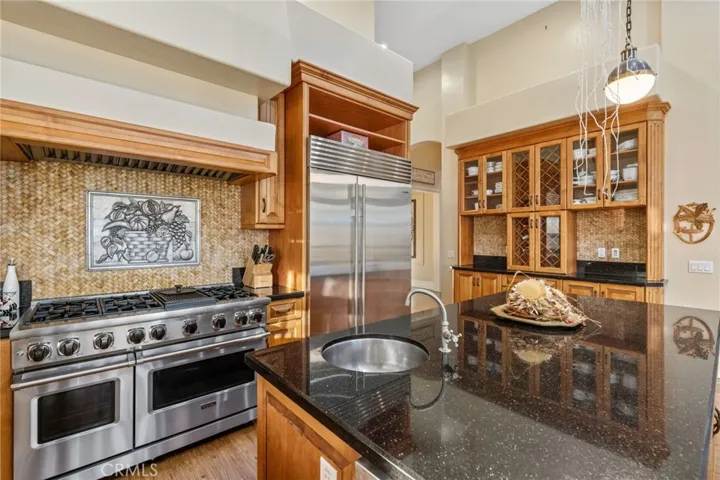 Viking stove, Sub Zero refrigerator, and a large walk-in