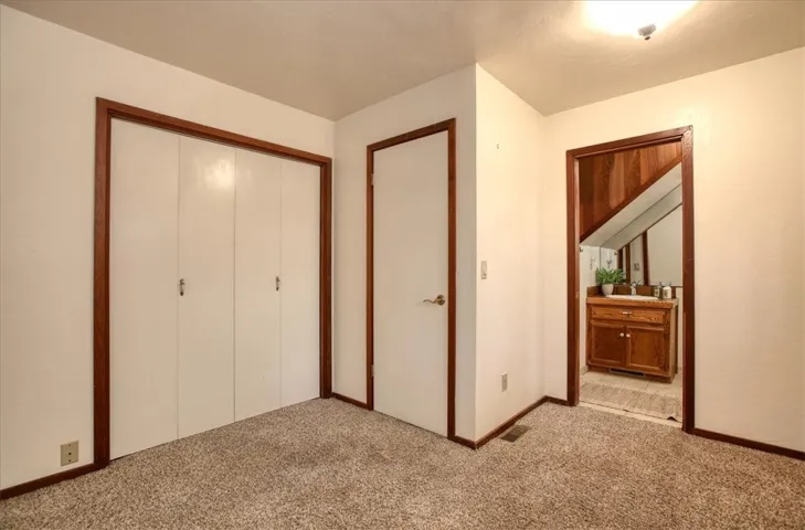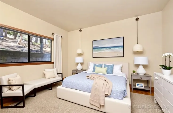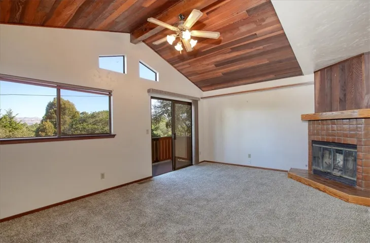 Near the end of an infrequently traveled road lies a cute two bedroom, two bathroom house surrounded by an abundance of trees. Enjoy views over these trees out to the Santa Lucia mountains, especially from the upper level! The main level has the kitchen, dining and living area, the second bedroom, and the second bathroom. Upstairs is a large primary bedroom with a deck that has views out towards the west. This home was built by the owner, who included thoughtful aspects, such as a floor plan that creates the feel of additional space, down to a stackable washer/dryer unit in one of the primary bedroom closets. The MANY vacant lots surrounding all three sides give the house a very private feel.