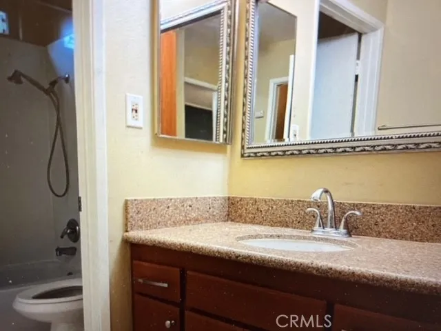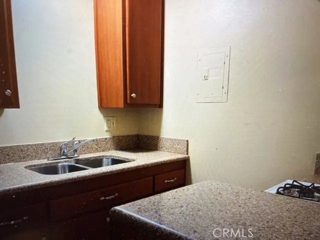 Beautifully remodeled one bedroom with air conditioning, conveniently located in a gated community near the 5 Fwy. Vaulted ceilings with architectural detail, newer dual pane windows, an invisible retractable screen, and a new bathtub. Peaceful top floor location with large patio and tranquil view of mature trees near the laundry room, pool, spa, and assigned carport space. The kitchen has been remodeled with beautiful cabinetry, siltstone countertops, stainless steel sink, and neutral tile floor throughout, except the bedroom which has a new laminate wood floor with a huge closet. Rent pays for trash, water, and gas. The tenant only pays for electricity.
