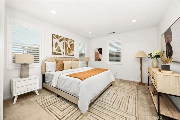 Contemporary elegance meets effortless comfort in this beautifully designed end-unit two-story townhouse. Ideally situated within the desirable gated Parkside Community of Ontario – and best of all, No Mello-Roos! This light-filled residence offers 3 bedrooms plus a loft and 2.5 bathrooms. A bright open-concept layout that seamlessly connects the living, dining, and kitchen areas. Chef-inspired kitchen featuring a quartz-topped center island with sink, abundant cabinetry for storage, and stainless steel appliances, blending beauty and functionality. A glass door provides access to a large private patio, perfect for relaxation and outdoor entertaining. A convenient powder room on the first floor for guests. A versatile loft upstairs — ideal as a family room, home office, media room, or optional 4th bedroom. Primary suite featuring a walk-in closet and a spa-inspired bath with soaking tub, separate glass-enclosed shower, and dual quartz vanities. Two additional bedrooms served by a beautifully finished full bathroom with dual sinks. Upstairs laundry room for ultimate convenience. Attached two-car garage with direct access. Enhanced throughout by recessed lighting, dual-paned windows, and plantation shutters. Central AC and heating, a tankless water heater, and two EV chargers. HOA dues: $346/month — includes spectacular resort-style amenities: clubhouse, Sparkling pool with relaxing fire pit, tot lot, and picnic areas perfect for family enjoyment. Ideally located next to Cucamonga-Guasti Regional Park. Minutes to Ontario Mills Mall, Metrolink Station, and Ontario International Airport. Quick access to Freeways 10, 15, and 60.