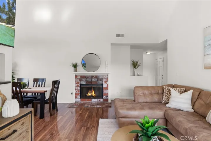 Welcome to your Huntington Beach haven! This bright and airy 2-bedroom, 2-bath condo has it all: soaring ceilings, a cozy brick fireplace, and an open floor plan that flows effortlessly onto a private deck, perfect for morning coffee or evening relaxation. The upgraded kitchen shines with a gas stove, built-in microwave, ample drawers, and plenty of storage for all your culinary adventures. Retreat to the spacious primary suite with a walk-in closet and dual-sink ensuite, while the second bedroom boasts mirrored closets, a ceiling fan, and lots of natural light. Just steps away, a separate bonus room with its own entrance, window, and door makes a perfect home office, studio, or extra storage space. Additional perks include brand new dual pane windows and sliding doors, and interior laundry area with overhead storage cabinetry. Enjoy 2 covered side-by-side parking spaces in a gated garage, guest parking just across, and a secure entrance for peace of mind. The Capewoods community adds low HOA dues, a sparkling pool, spa, and clubhouse. Centrally located near shopping, restaurants, Huntington Central Park, and just minutes from Huntington Beach Pier, this condo is a dream starter home or investor gem. Style, comfort, and convenience all wrapped into one inviting package!