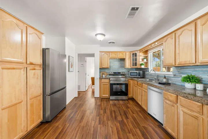 Welcome to the highly sought after Palm Desert County Club This home features three bedrooms and two bathrooms with breathtaking mountain and golf course views with solar. Perched on an elevated lot, this home radiates charm and style with a boho-chic, sunshiny vacation vibe. Upgrades include brand-new, never used appliances, new landscape with 37 new fiscus bushes, all new celling fans, laminate flooring, remodeled bathrooms, new lighting, remodeled kitchen, granite countertops. Every detail has been thoughtfully selected to create a warm, inviting atmosphere perfect for full time living or a sunshiny desert getaway. Enjoy the outstanding community amenities ( some items listed in community are owned by the city), Including two sparkling pools and a spa, a dog park, basketball and volleyball courts. The golf course is public and is pay as you play and they have a nice restaurant and bar. Conveniently located near world famous El Paseo shopping and dinning street and the Indian wells tennis garden the home to world famous BNP tennis tournament. Low HOA dues of $33 a month make this a desirable community. Also the solar will save you hundreds of dollars a month on your electric bill. This home truly embodies the Palm Desert lifestyle- stylish, peaceful, and perfectly situated.