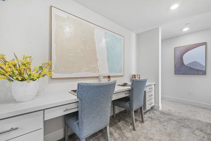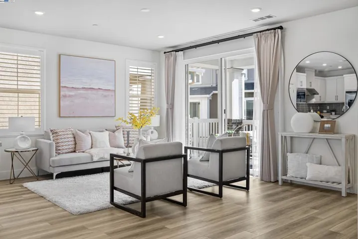 A modern home boasts a great floor plan featuring 3 spacious bedrooms and 3.5 luxurious bathrooms, each bedroom providing the ultimate privacy with its own en-suite bathroom.One bedroom and one bathroom are located on the first floor. One may enjoy the bright open spaces as natural light floods the home on a prime location.Upgraded flooring and plush carpet are throughout the home.The kitchen stands as a centerpiece, showcasing a full backsplash, quartz countertops, and sleek stainless steel appliances, seamlessly connecting to California Room—ideal for entertaining. Custom Hunter Douglas shutters and drapes add a touch of elegance to every window while the primary bedroom offers a customized closet system and tranquil en-suite. On the third floor, there are built-in desk and cabinets, perfect for a home office setup. The garage has been upgraded with walls and electric car charging station prep. The solar panel system has been fully paid-off. Bridgeway residents enjoy a host of amenities like a clubhouse, a swimming pool, dog park, and playground. Nearby National Wildlife Refuge offers open space with trails and nature to explore. The communicty is close to Meta and Tesla, among other major employers. Easy access to Dumbarton bridge and I-880.
