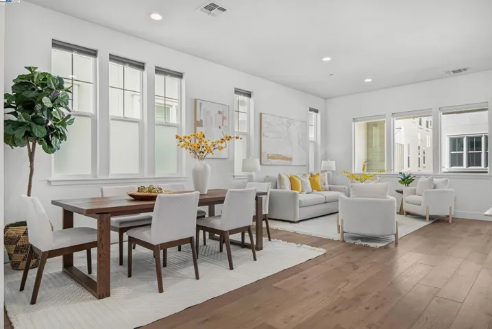 This stunning 4-bedroom, 3.5 bathroom home offers 2,410 square feet of thoughtfully designed space. The entire home boasts upgraded flooring with a mix of wood floor and carpet. The first floor presents a private suite complete with a bedroom, a full bathroom, kitchenette, and washer and dryer, perfect for guests or multi-generational living. Enjoy the convenience of a private entrance to this suite, offering independence and privacy. Ascend to the second floor, where the 10-foot high ceilings create an expansive living space, seamlessly connecting the kitchen and dining area. An upgraded open-plan living area, featuring a sophisticated kitchen with an enhanced island and stainless steel appliances. The spacious covered patio is perfect for relaxing or entertaining. The home is equipped with a water softening system. The owned solar panel system, complemented by a Tesla battery, underscores the home’s commitment to sustainability and energy efficiency. The community is close to Meta and Tesla, among other major employers. The residents enjoy a host of amenities like a park, a kid’s playground, BBQ and picnic area. Nearby National Wildlife Refuge offers open space with trails and nature to explore. Easy access to Dumbarton bridge and I-880.