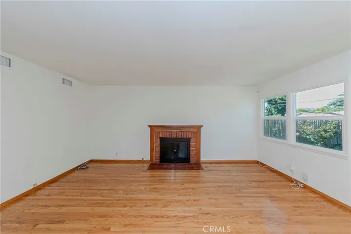 Bright and airy open floor plan with a cozy living room and fireplace adjacent to the kitchen.