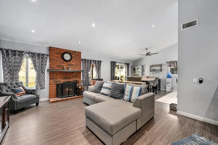 Beautifully Updated Single-Story Gem in Lake Jennings Estates with No HOA! A tastefully remodeled 3-bedroom, 2-bath home nestled in the desirable Lake Jennings Estates community of Lakeside. Just moments from scenic Lake Jennings, this inviting residence blends modern comfort, energy-efficient upgrades, and relaxed East County living in one exceptional package. Enter to discover an open, light-filled floor plan featuring upgraded flooring (installed in 2016), triple-paned windows, and a sliding glass door that enhance quiet comfort and energy savings. The well-appointed kitchen showcases warm wood cabinetry, added shelving for extra storage, and a seamless flow into the dining and living areas—ideal for both daily living and entertaining. Unwind in the spacious bedrooms with generous closets, including a private primary suite designed for comfort and relaxation. Enjoy central heating and air conditioning for year-round ease. The backyard retreat offers a stamped concrete patio, outdoor fireplace, and jacuzzi, perfect for entertaining or unwinding under the stars. A covered patio expands your outdoor living space, while a storage shed provides added convenience. Thoughtfully maintained and move-in ready, this home offers a wonderful blend of charm, function, and location—perfect for first-time buyers or anyone seeking the peaceful beauty of Lake Jennings living.