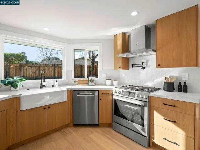 Welcome to your dream modern farmhouse, recently renovated and nestled in the desirable West Dublin area. This East-facing home boasts an expansive 2,000 square foot open floor plan that invites abundant natural light. The living room, warm and welcoming with its cozy fireplace, seamlessly connects to a kitchen/dining area graced by skylights. Culinary enthusiasts will delight in the kitchen, equipped with sleek European cabinets, a convenient pot filler, island surrounded w/ bar stools, and top-of-the-line stainless steel appliances. This lovely home offers versatile living with a primary bedroom on the first floor, featuring two closets, and an optional primary suite upstairs, adding flexibility to your living arrangements. The upstairs includes three additional bedrooms and a bathroom. Step outside to a flat backyard, where the in-ground pool and spa promise endless summers of fun and relaxation. The space is perfect for hosting gatherings, with plenty of room for everyone to enjoy. Located in a tranquil neighborhood. Beyond the confines of this idyllic residence, the community features top-notch schools, easy access to the major freeways, and is mere minutes from shopping centers, hospitals, and recreational facilities. Don’t let this opportunity pass by!