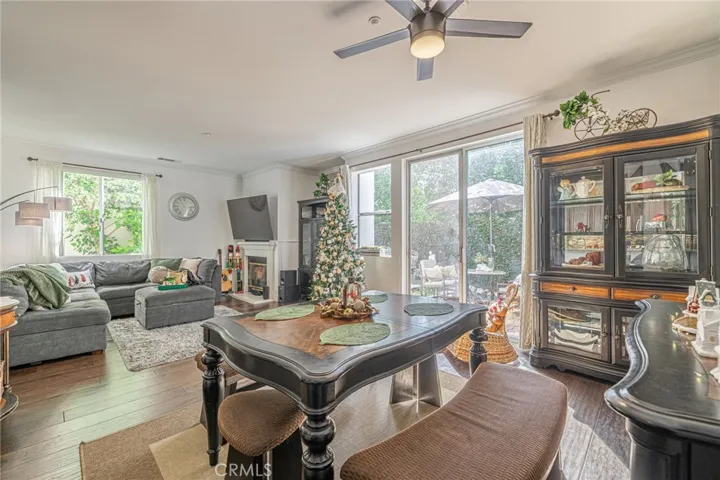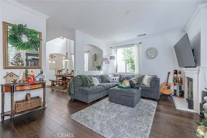 Step inside to an inviting open-concept floor plan featuring gleaming hardwood floors, recessed lighting, and a spacious living room with a cozy fireplace providing a welcoming space for relaxing evenings or lively gatherings with loved ones. The formal dining area, framed by soaring ceilings and abundant natural light, offers an elegant setting for shared meals and special occasions.