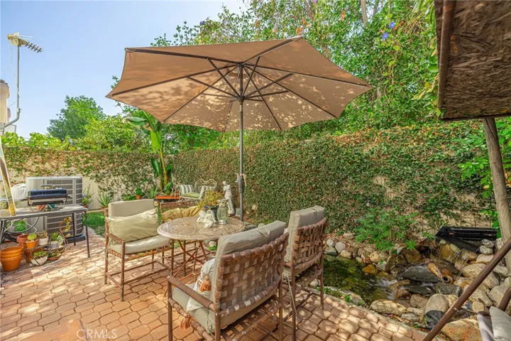 Step outside to a tranquil backyard oasis, where a peaceful pond and low-maintenance greenery create a private retreat for morning coffee, weekend barbecues, or quiet reflection.