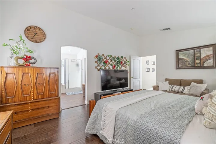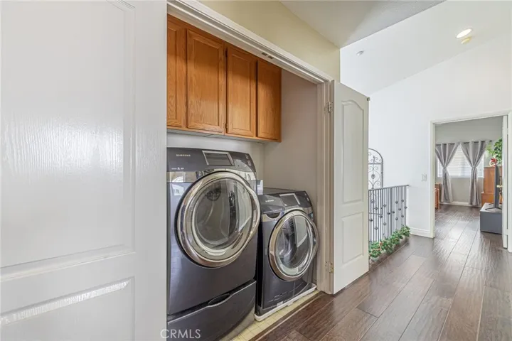 This residence features hardwood floors extending through the main living areas and bedrooms, with wood-like tile flooring in the kitchen and bathrooms for easy maintenance and a cohesive aesthetic. Only the stairs are carpeted, providing a soft touch while maintaining elegance and practicality.