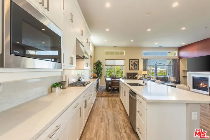 Nestled in the scenic hillsides of Canyon Country, this single-story home is located within the desirable guard-gated 55+ Verano community and offers 2 bedrooms, 2.5 bathrooms, and over 1,600 sq. ft. of thoughtfully designed living space. Situated in a prime pocket of the community, the home is one of few with a completely open backyard and no rear neighbors. At the heart of the home is an open-concept living area with a fireplace, high ceilings, and large windows that fill the room with natural light. Perfect for a family or those who love to entertain, the kitchen opens to the living room and is complete with recessed lighting, stainless steel appliances, quartz countertops, double ovens, a wine fridge, a walk-in pantry, and a butler’s pantry. The bar-top island and adjacent formal dining area provide plenty of space for additional seating. The floor plan features two spacious bedrooms, both with en-suite bathrooms. The primary suite includes a walk-in closet, dual vanities, and a walk-in shower. Additional features include a powder room, a separate laundry room with a sink, a 2-car garage with built-in storage, and solar panels. Outside, enjoy a beautifully landscaped backyard with artificial turf and a covered patio area. The Verano community offers an array of amenities, including a pool and spa, fitness center, clubhouse, outdoor lounge and dining areas, walking paths, and more.