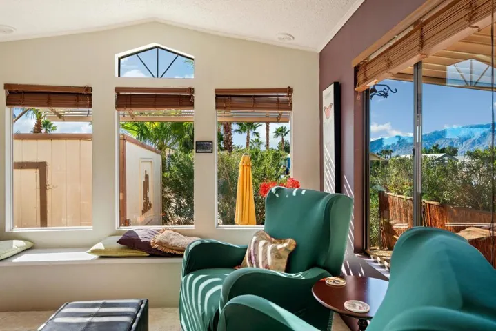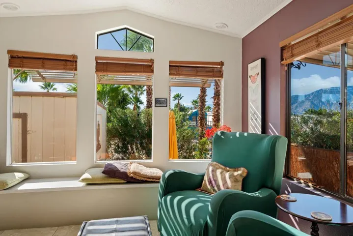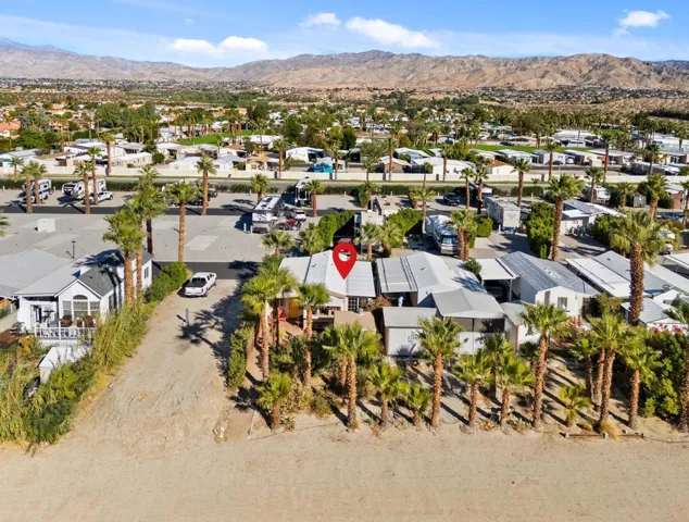 Exceptional 1-bed/1-bath seasonal or full-time retreat at The Sands RV & Golf Resort!Nestled in a quiet, well-maintained pocket of the community and backing onto a picturesque natural wash, this home offers a rare combination of privacy, convenience, and resort-style amenities. Mature palm trees frame your backyard, creating an inviting desert-oasis ambiance with stunning Mountain View’s. The spacious, paved outdoor area features an easy-care sprinkler system on a timer and a delightful picnic/entertaining space–perfect for morning coffee or an evening under the stars.Inside, you’ll find a thoughtful layout with excellent storage throughout. The kitchen boasts abundant cabinetry, a gas range and an over-the-range microwave–ideal for casual chef duties or entertaining guests. The bathroom features a walk-in shower (no tub) and built-in cabinets for linens and essentials. The living area is inviting, bright, and ready for seasonal or year-round comfort.A generously sized shed provides extra workspace or storage for golf gear, bikes, tools, or seasonal furnishings. This home is being sold furnished (minus personal items), making it truly move-in ready. The same owners have cared for it for approximately 13 years–used for seasonal enjoyment but meticulously maintained.Living at the Sands means more than just a home–it’s a lifestyle. Golf lovers will appreciate the on-site 9-hole course, driving range and a putting/chipping green. Stay active with pickleball, a fitness room and the community’s heated pool & two spas. The resort also offers activity rooms, a library, laundry facilities, dog parks and organized events–an engaging, friendly community that blends carefree living with comfort.Whether seeking a seasonal base, full-time desert retreat or rental-friendly investment, this home checks all the boxes. Low maintenance living, outdoor privacy, desert charm, resort amenities and mountain views–all located in a quiet, welcoming resort setting.Don’t miss the opportunity to own a special place at the Sands RV & Golf Resort where every day feels like a getaway. Schedule your showing today and step into your sun-soaked, palm-fringed paradise