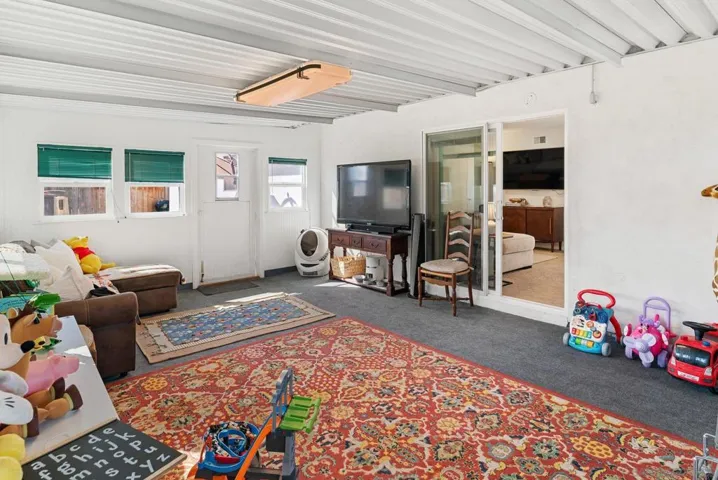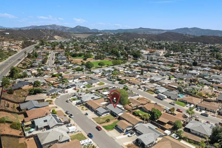 Charming Lakeside Homestead with Owned Solar & Mountain Views! Welcome to a place where small-town charm meets easy suburban living. This 3-bedroom, 2-bath home combines vintage character with smart updates, including a newer HVAC, an approximately 5-year-old roof, and owned solar (30 panels) with a garage subpanel—perfect for a future ADU. Inside, a cozy rock wood-burning fireplace, wood panel accents, and updated farmhouse lighting create a warm, inviting feel. The spacious sunroom adds flexibility as a playroom, art studio, or game room. Step outside to relax by the firepit, take in the mountain and sunset views, or enjoy low-maintenance turf and a chicken coop for your backyard homestead dreams. Nestled on a quiet cul-de-sac surrounded by friendly neighbors, this home captures the spirit of Lakeside—where community comes first. Just a short bike ride away, Lindo Lake offers walking paths, a skatepark, pickleball courts, and a bustling community center. With solid bones, plenty of character, and a welcoming neighborhood feel, this home is ready for you to make it your own—all just 30 minutes from the coast.
