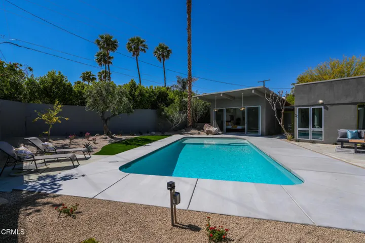 Welcome to 2839 N Davis Way–an extraordinary fusion of iconic Palm Springs mid-century modern architecture and sophisticated, contemporary design. Originally built in 1959 by the renowned Alexander Construction Company and attributed to legendary architects Palmer & Krisel, this home is a shining example of the ‘Desert Modernism’ movement that helped define the Palm Springs aesthetic. With its distinctive beamed ceilings, clean lines, clerestory windows, and harmonious indoor-outdoor flow, this architectural gem captures the spirit of an era–and elevates it for modern living.Adding to its rich history, this home was once owned by television star Milburn Stone, best known for his role as ‘Doc’ Adams on Gunsmoke. It stands not only as a residence but as a tangible piece of Hollywood and architectural heritage, nestled in the highly sought-after Racquet Club East neighborhood, a showcase of mid-century homes.Inside, the home has been meticulously reimagined by Corsini Stark architects and a celebrated interior designer from HGTV, marrying timeless style with the comforts of contemporary life. An open-concept layout connects the kitchen, dining, and family room, making it perfect for modern entertaining and everyday ease. Three spacious bedrooms and three beautifully appointed bathrooms offer private comfort, each framed with intentional, elevated design.A stunning glass breezeway leads to the show stopping primary suite–a sanctuary of glass and light with floor-to-ceiling windows offering views of a newly renovated backyard oasis. The en suite bath is a true indoor-outdoor experience, with a soaking tub and shower encased in floor-to-ceiling windows and surrounded by a living privacy wall of manicured hedges and desert flora.Outside, revel in the quintessential Palm Springs lifestyle with a sparkling pool, bocce ball court, and multiple lounge and dining areas–all set against the backdrop of breathtaking mountain views. Professionally excavated and artfully designed, the front and backyards feature drought-tolerant landscaping for effortless beauty and sustainability.This is more than a home; it’s a masterwork of history, design, and livability. Experience the legacy–and the future–of Palm Springs at 2839 N Davis Way.