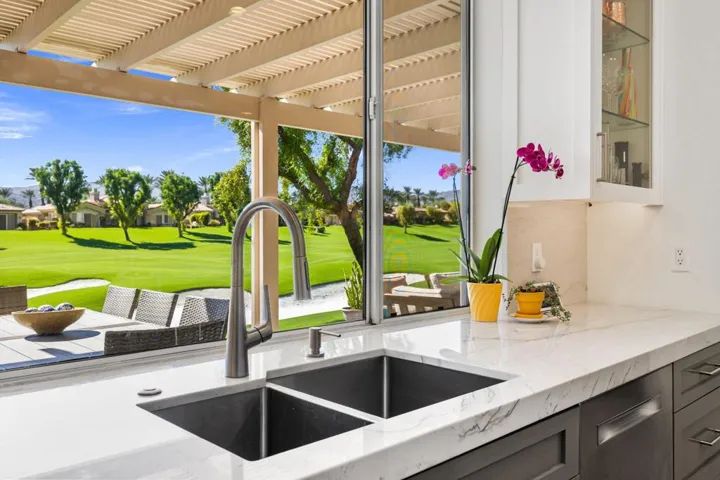 Welcome to 745 Box Canyon Trail, a Desert Gem in Indian Ridge Country Club. Step into sophistication with this Acacia 3 floor plan, thoughtfully reimagined with over $300,000 in upgrades inside and out. Perfectly positioned on the 7th hole of the Grove Course, this south-facing stunner captures sunshine and sweeping views, ideal for your morning coffee or sunset cocktail on the expanded, covered patio. Inside, the transformation is as stylish as it is smart. Pony walls are gone, creating an open, flowing layout anchored by a chef-inspired kitchen complete with a new island, top-notch functionality, and a design that wows. The addition of a powder room brings convenience, while the redesigned primary bath offers spa-like serenity with a double vanity and generous walk-in shower. Meticulously maintained and radiating tranquility, this home delivers the perfect balance of luxury and livability, a haven whether you’re here full-time or just for the season. Don’t miss your chance to make this exceptional home yours! Furnished per inventory, Club Membership available.