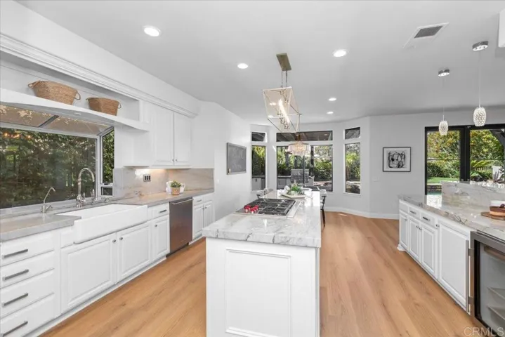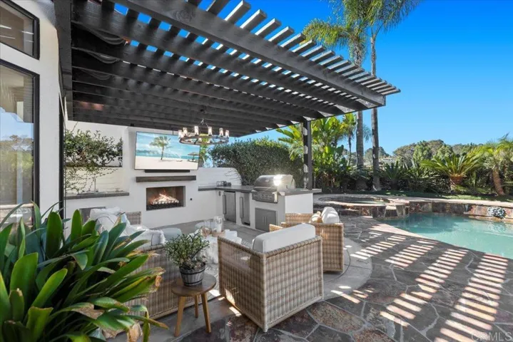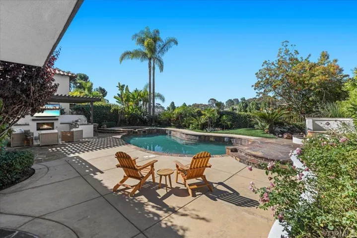 Stunning executive home situated on a quiet double cul-de-sac in the heart of Carmel Valley. Perfectly positioned on a private lot with serene skyline views, this beautifully upgraded 6-bedroom, 5-bath residence is an entertainer’s dream, complete with a sparkling POOL & SPA, and OWNED solar! The dramatic entry welcomes you with soaring ceilings and abundant natural light, leading to a functional floor plan featuring two bedrooms and two full baths on the main level—ideal for guests, an office, gym, or multi-generational living. The entertainer’s dream kitchen showcases exquisite quartzite counters and full backsplash, Sub-Zero French door refrigerator and beverage cooler, Wolf cooktop, Cove dishwasher, and designer fixtures. Wide-plank luxury vinyl flooring adds warmth and style, complemented by solid-core mahogany interior doors and fresh paint throughout. Upstairs, you’ll find four spacious bedrooms including a luxurious primary suite with marble counters, plus an additional office space and an ensuite guest room. The resort-inspired backyard was designed for year-round entertaining, complete with a newly designed poolside living room featuring outdoor fireplace, built-in Blaze grill, Sub-Zero beverage fridge and ice maker. Enjoy effortless control with a fully app/Wi-Fi-automated Aquastar Pro Poolside Tech system (pool pumps, heater, and filter all <3 years old). Additional upgrades include a 6.2kW LG solar system, 3-year-old Bosch 18-SEER HVAC, Pentair water softener, Tesla charging station, Andersen exterior doors, Wi-Fi controlled garage doors, and 3-car garage! Located within walking distance to top-rated Ashley Falls Elementary and park, and just minutes to Torrey Pines, CCA, Cathedral Catholic, scenic trails, and premier dining at Del Mar Highlands and One Paseo, 4939 Concannon Ct offers a rare combination of sophistication, privacy, and one of the best locations in Carmel Valley. Room dimensions & sq footage are approximate, per builder & assessor's record. Mello-roos is estimated. All MLS & marketing info is approximate & not guaranteed. Solar/Washer/Dryer/Fridge are included. Some interior furniture and patio furniture/accessories are negotiable.