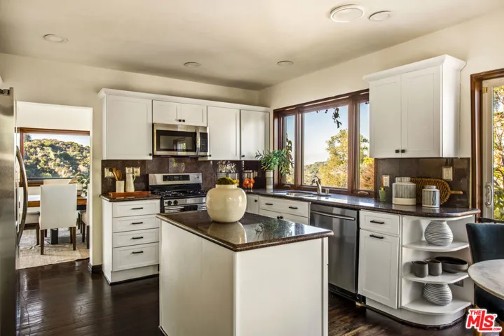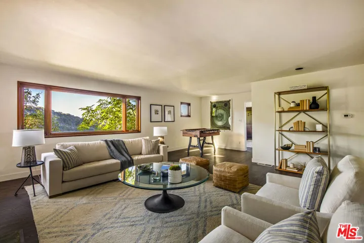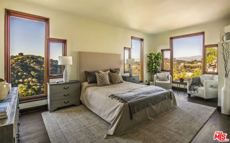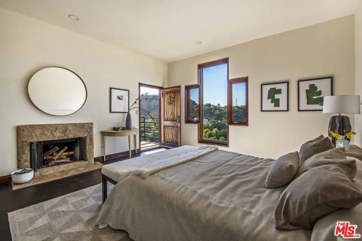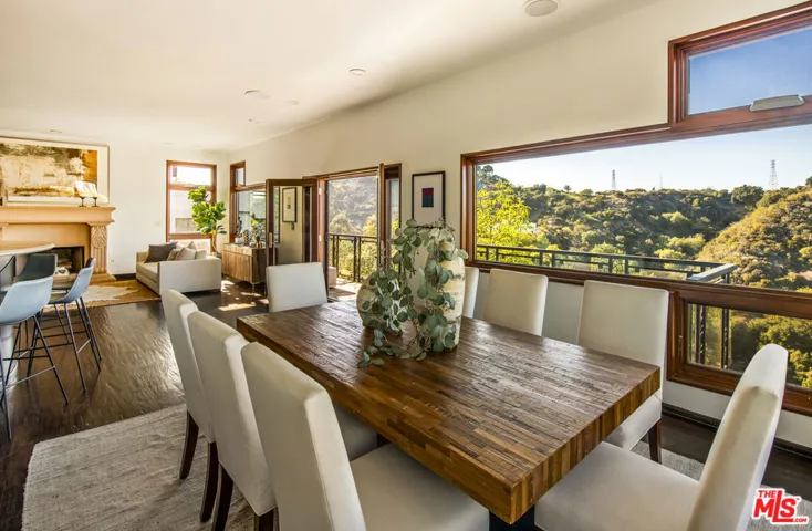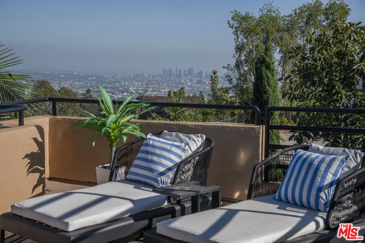 Sited in the heart of Laurel Canyon, this contemporary residence delivers panoramic views from nearly every angle. Designed to maximize its natural surroundings, wide custom windows and a 1,000-square-foot rooftop deck frame unobstructed 360-degree vistas of the mountains, canyon, city skyline, and glittering lights beyond. Set on a quiet street and spread across three combined lots totaling 13,564 square feet, the property offers rare scale, generous outdoor space, and the potential to add value, all within one of the Canyon’s most coveted enclaves. Inside, the main living area is defined by soaring ceilings and one of the home’s four wood-burning fireplaces. Walls of glass open to a large balcony, while a built-in bar supports seamless indoor/outdoor living and entertainment. The kitchen connects naturally to the living area and features an oversized island, ample storage, and stainless steel appliances, completing a thoughtful layout. There are three bedrooms, all en-suite and four bathrooms, each with high ceilings and custom windows. On the lower level, a generously-sized flex space, with its own entrance and full bath offers the ideal setup for a guest suite, office, or creative studio. Additional amenities include a two-car garage, ample street parking, extra storage, newer A/C system, and water filtration system. All of this, within the highly sought-after Wonderland Elementary School district and just moments to all that Sunset and Ventura Boulevards living have to offer.