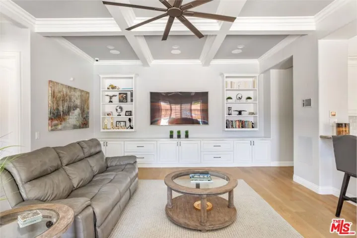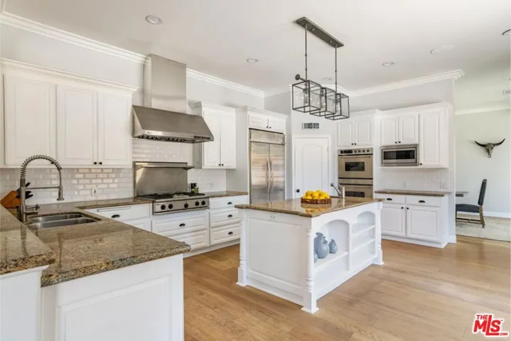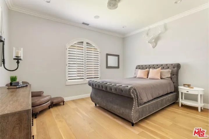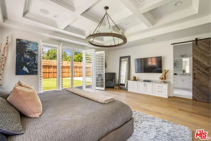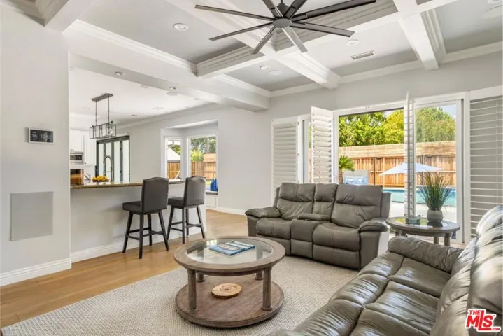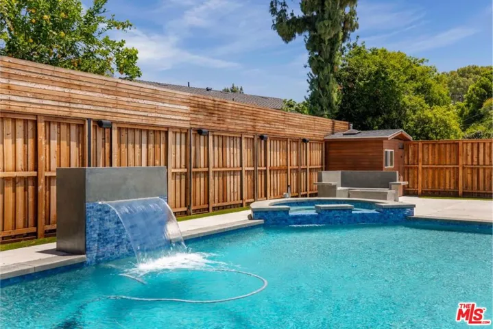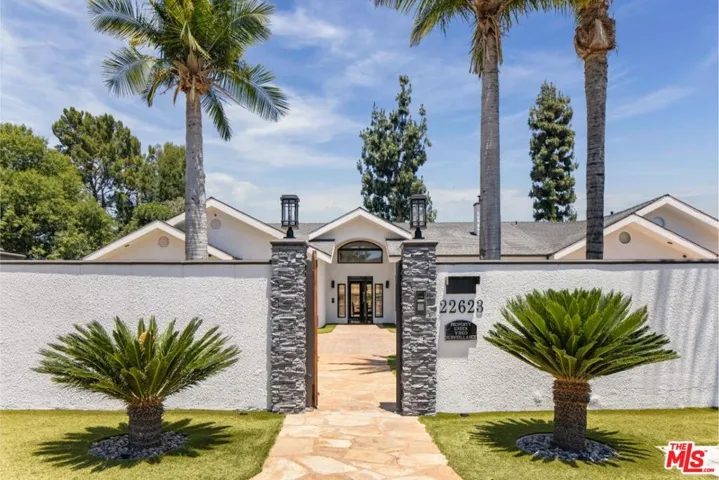 Behind gates and situated in a quiet Woodland Hills neighborhood, this sophisticated residence recently completed a thoughtful renovation. All on one story, and on a sprawling 18,000 square foot flat lot, this five-bedroom, four-bathroom home is nearly 4,000 square feet. It’s conveniently located moments to the Topanga Village, Calabasas Commons, and the upcoming Rams Village. Additionally, the property falls within a well-regarded school district and walking distance to Shoup Park delivering a perfect balance of suburban comfort and city accessibility. Inside, the home features quality finishes, vaulted ceilings, and modern smart home upgrades, including surround sound, a whole-home water softening system, and solar panels for improved energy efficiency. The kitchen includes an oversized island and is well-suited for both daily use and hosting. The primary suite includes a spacious bathroom, walk-in closet, and direct access to the backyard. Accordion doors open to a private backyard with a pool, spa, waterfall, fire pit, LED lighting, palm trees, outdoor speakers, and a putting green designed for relaxed outdoor living. The three-car garage includes a finished ~400 square foot bonus room with an additional bathroom above, offering flexibility for use as a game room, office, or studio. Too many upgrades to include, however the complete list is readily available.