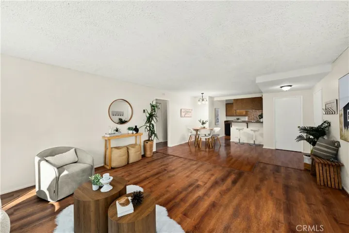 Adorable single level 2-bedroom, 2-bath lower level condo featuring a spacious, light-filled living room that seamlessly opens to the dining area and kitchen. The galley-style kitchen offers ample storage with abundant cabinets and a modern stainless steel single-bowl sink and a stainless steel refrigerator and range. The primary bedroom boasts a full wall of closet space with accordion wardrobe doors, a sliding door leading to the back patio and a private en-suite bath with shower. The generous second bedroom includes a large closet and a window overlooking the patio. Just outside this bedroom is the beautifully remodeled hall bathroom featuring a pedestal sink, a walk-in shower with modern fixtures and a sleek clear glass enclosure. The condo offers potential to add a third bedroom. Condo has recently been painted(interior) and laminated wood floors throughout. Step outside to your private backyard patio, shaded by a mature tree and finished with a concrete surface, perfect for relaxation. Additional amenities include an attached one-car garage, community laundry, pool, and guest parking. Avocado Manor lives true to its name with 2 large producing avodado trees for your enjoyment. Conveniently located within walking distance to Chapman University and the historic Orange Circle and Old Town Orange making it a great place to live or great rental opportunity.