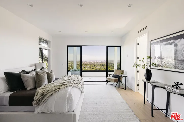 Not furnished as shown. Available Fully Furnished & Turnkey for Short or Long-Term Lease. Perched above the city with rare 270 jetliner views from Downtown to Century City, this fully renovated 4 bedroom, 4 bathroom Hollywood Hills retreat spans over 4,000 sq ft of high-impact design and effortless livability. A custom pivot door opens to a dramatic double-height foyer and floating oak staircase leading to expansive, sun-splashed living areas. Retractable glass walls dissolve the line between indoors and out, connecting herringbone-floored living and dining spaces to a wraparound terrace perfect for entertaining. The gourmet marble kitchen features bespoke oak cabinetry, Thermador appliances, and a hidden walk-in pantry; a chic powder room with integrated Calacatta Viola vanity completes the main level. Upstairs, a custom sauna sits just outside the luxe primary suite with private balcony, spa-style bath (soaking tub + marble shower), and generous walk-in closet. Two additional bedrooms, a full bath, and laundry round out this floor. On the lower level, a separately accessed ADU (interior and private exterior entries) offers a wet bar, full bath, and wraparound windows ideal as a guest suite, creative studio, private gym, or rental opportunity. Outdoors, enjoy a turf yard, lemon tree garden, and spaces suited for a cold plunge or cozy lounge. A two-car garage adds convenience. Quiet, private, and minutes to Sunset Blvd., West Hollywood, and Beverly Hills, an elevated escape with everyday ease.