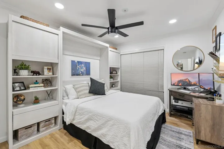 Live the quintessential coastal lifestyle in this beautifully updated Pacific Beach condo—just steps from the sun, sand, surf, and sparkling Sail Bay! Ideally situated in one of San Diego’s most coveted beachside neighborhoods, this home offers exceptional access to Mission Bay, the ocean, boardwalks, bike paths, water sports, dining, cafés, and endless outdoor recreation right outside your door. Recently remodeled with modern finishes and a soothing neutral palette, this light-filled, move-in-ready retreat blends relaxed coastal living with contemporary style. The open floor plan features a bright living and dining area flowing seamlessly to a serene private balcony—perfect for enjoying bay views and refreshing sea breezes. The stunning kitchen boasts stone countertops, a large center island with breakfast seating, stainless steel appliances, and abundant workspace for cooking and entertaining. A spacious gallery hallway leads to the primary suite, complete with plenty of closet space and a stylish barn door entry to the spa-inspired bath featuring dual sinks and a walk-in shower. The versatile guest bedroom, outfitted with a Murphy bed, is ideal for guests or a home office, and is serviced by an additional beautifully updated full bath. Additional highlights include two secure parking spaces and access to the Santa Susanna community amenities—a sparkling beach-side pool, BBQ area, and direct access to the bay and sandy beaches. Experience effortless coastal living where every day feels like a vacation.