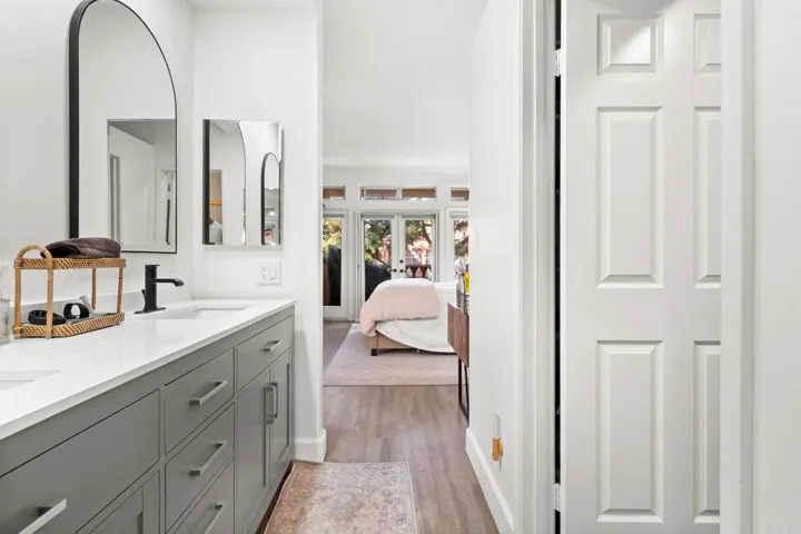 Welcome to this gorgeous upper-end unit in the desirable gated community of Palmilla in Oceanside! This home offers an open floor plan filled with lots of natural light and new vinyl flooring throughout. Step into the spacious family room featuring vaulted ceilings and a cozy fireplace. The updated kitchen opens to the dining area and family room, creating an inviting space for everyday living. Enjoy the large balcony overlooking the sparkling community pool and take in the cool breezes that Oceanside has to offer. The primary bedroom offers French doors that open to a private balcony, a beautifully updated en-suite bath, and a spacious walk-in closet designed by Closet World. Two additional bedrooms plus an updated guest bathroom provide plenty of space for family, guests, or a home office. You’ll also love the convenience of a full-size laundry closet, air conditioning, a detached one-car garage, and an extra assigned parking space. The Palmilla community features great amenities including a pool, spa, playground, and picnic area. Conveniently located near shopping, restaurants, and schools—this home truly has it all!!