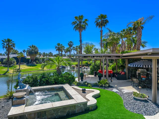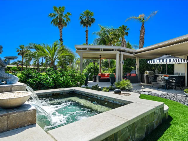 #57 DESERT SHORES RESORTGorgeous interior remodel on contemporary side.Eastern backyard has a large spa with sheer descent falls and fire features!Garage/Great Room-Kitchen/ Retreat with Bathroom.Common area includes clubhouse, pool, spa, fitness, tennis, pickleball.