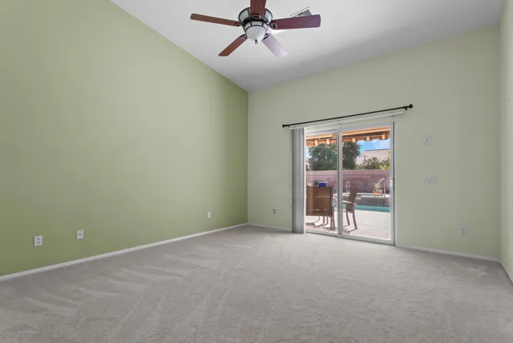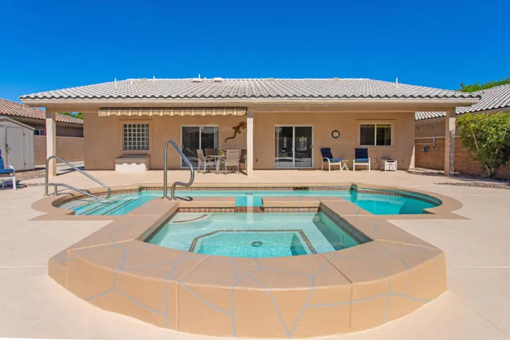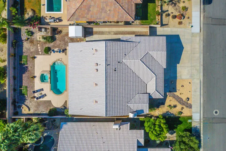Welcome to your private desert retreat in the heart of Palm Desert! This beautiful south-facing pool home sits on a spacious 10,000+ sq ft lot and perfectly blends comfort, style, and easy living–with no HOA fees! Inside, you’ll find a bright and open floor plan spanning 2,275 sq ft, featuring three generous bedrooms, two full bathrooms, and expansive living areas ideal for entertaining or quiet relaxation. The home has been lovingly maintained and thoughtfully refreshed with brand-new carpeting and practical updates throughout. Extra insulation in both the home and garage ensures year-round comfort and energy efficiency.The kitchen offers abundant counter and cabinet space with granite countertops, double ovens, a gas range, built-in microwave, and a brand-new dishwasher, flowing seamlessly into the family room centered around a cozy gas fireplace. The three-car garage and side parking area for a RV, trailer, or work truck provide versatility rarely found in Palm Desert homes.Step outside to your private backyard paradise, newly remodeled with cool deck technology, sparkling pool, waterfall spa, and refreshing outdoor shower–perfect for cooling off after a swim. Enjoy peekaboo mountain views, a remote-controlled retractable awning, and multiple lounging areas for entertaining under the stars. Ideally located near Disney’s Cotino Storyliving community, Desert Willow Golf Resort, and Acrisure Arena, this home captures everything you love about desert living–space, style, and sunshine in one perfect package!