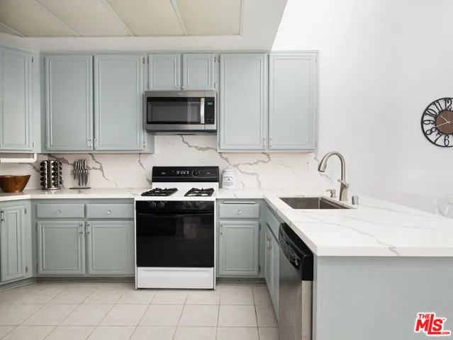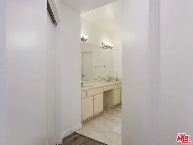 Picturesque condo that nestled at the end of a cul-de-sac in coastal San Pedro. The serene community has a private gated parking and is built around a treelined area of the city. Oak colored floors adorn the entrance to this lovely condo which are complimented by pure white colors walls that continue to rise up to impressive vaults that can be enjoyed in the dining room and again in the large family room. The airy expanse invites tremendous light to pour in the volumed space organically. The entire structure is protected by a woodland area that welcomes local bird life, which gently fills the home with pleasant singing, a testament to this homes peaceful nature. A large balcony breathes in views of the port, Palos Verdes hillside, local soccer fields, and encompassing greenery. The dining room has such an open feel that leads right into the updated kitchen that is customized with quartz counters, backsplash, and touches of a beautiful teal hue on all cabinetry that create a welcoming ambiance for friends & family to enjoy home cooked meals. A secondary server off the kitchen is complete with a sink and additional cabinetry plus mirrors which is a huge asset during culinary experiences at home. A wonderful bedroom overlooks lush plant life plus walkway and tons of sunlight at the from the home. There is a laundry room inside of the home and this condo happens to be one of the biggest this complex offers. The family room has an attached sitting room that has sweeping views and a cascading staircase that lifts up to an amazing loft. The loft can be left to the imagination of the owners to be a den, hangout, kids playroom, or boardgames area. Luckily, the complex is positioned to be walking distance to theaters, restaurants, shopping, and a short distance to freeway access. The gated garage comes with 2 spaces. There is an elevator that goes from the private parking up to the top floor. The primary room is an incredible secluded sanctuary. The vaults in this area add another layer of gratitude to the living space which mark an incredible difference to be on the top floor. There’s a lovely his and her closet and his and her sinks side by side that complete this part of the home.