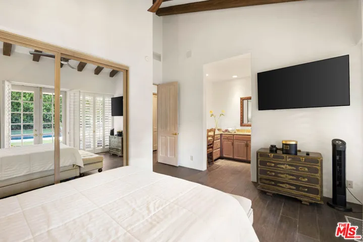 Gated Community, must call in advance for access. Located in the prestigious gated community of Bella Monte this majestic Modern Spanish is sited on over half of an acre of fee land. the corner lot is embraced by lush landscaping and breathtaking mountain views. As you enter through the double doors, you take a beat in the calm foyer, as you turn to your right the Great Room reveals itself, flanked on both sides by outdoor courtyards. The sunken bar and dining room want your attention; however, you will be drawn to the enchanting backyard. Stroll by the large spaces both in and out of sun and then you stand still and take in the pool. Designed and built by the valleys premier pool builder, Teserra, this stunning pebble Tec saltwater pool and spa has a mesmerizing cascading water feature, all operate seamlessly from your phone. Just past the pool is a modern firepit with flames that dance well into the night. Delicious fruit trees, green grass and plenty of room for guests and pets. Let’s step back into the home, French doors lead us into the kitchen. We have heard the words, “Cooks Kitchen”, Gourmet Kitchen” “Chefs Kitchen” you choose as the built in Miele Coffee maker makes your favorite beverage, Double Convection ovens, Sub zero refrigerator, custom cabinetry, granite countertops, generous center island, a large walk in pantry and a utility closet stand ready for a small gathering or entertaining hundreds of guests. After a busy day, or just wanting to find refuge from guests, lets visit the Primary Suite which is over 1400 private square feet of indulgence. A gym, resort size wet sauna, second story office, den, walk-in closets, lush courtyard and a two-person jetted tub are ready to serve. The open shower is just glorious. Separate water closet with a bidet. There are four additional ensuite bedrooms, 2 in the main house and two private attached casitas. The oversized four car carpeted garage, just adds to the smiles. Green features to save you some green; owned solar panels, owned solar heating pool system, Tesla car charger, Whole house attic fans and 2 X 6 construction keeps the home cool. Bella Monte is a gated community with 24-hour Guards, there is a Clubhouse, gym (yes you have your own) and two tennis courts, with one having been converted for Pickleball.