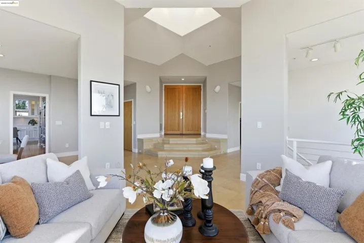 Perched at the end of a quiet level cul-de-sac, views encompassing all 5 bridges, San Francisco, & even the Farallon Islands. Originally envisioned as a high-end Mediterranean estate, the home has been thoughtfully updated to fuse timeless architectural warmth w/crisp contemporary sophistication. The result is a residence that feels both enduring and current—an effortless blend of design, comfort, & innovation. 4+ Bedrooms | 3.5 Baths | Chef’s Kitchen Dramatic entryway sets a grand tone from the moment you arrive. Chef’s kitchen w/Silestone quartz countertops, custom cabs, modern plumbing & lighting fixtures, & stainless appliances designed for entertaining, w/a fluid connection to both formal & informal open living spaces. Appliances include a Sub-Zero refrigerator/freezer, Miele oven & exhaust, & a Lutron remote-controlled shutter system in the kitchen. Lavish primary suite featuring a private sauna, spa-style bath, & unparalleled views stretching to the horizon. Expansive level backyard—ideal for croquet, badminton, gardening, or simply relaxation. Expansive deck clad in Brazil Ipe wood, offering an outdoor living experience. Eco-upgrades: an 8 kW+ solar array paired w/2 Tesla Powerwalls for energy independence. Views, level outdoor spaces, &high-end finishes can all be yours. Views: Downtown, Ridge