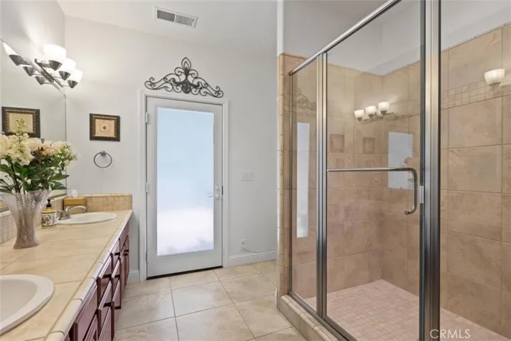 Step out into your resort-style backyard, where a Pebble Tec pool with cascading waterfall invites you to unwind. The spacious patio, wired for TV and spa, is the perfect place to entertain or relax beneath the stars. A thoughtfully designed enclosed spacious pool equipment building offers additional storage and enhances the home’s privacy, perfectly complementing the serene resort-like setting.
