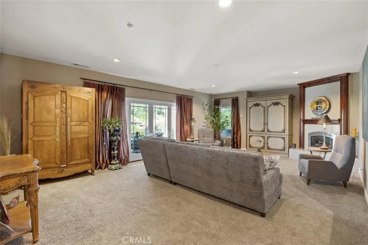 At the heart of the home, the chef-inspired kitchen impresses with granite countertops, a large center island, soft-close custom cabinetry, and an oversized built-in refrigerator. The kitchen and living areas flow effortlessly outdoors through elegant French doors, opening to a grand balcony where sweeping views of the golf course and canyons set the stage for unforgettable gatherings. cozy nights can be found in the living room with the fire going in the fireplace and beautiful views to take in.