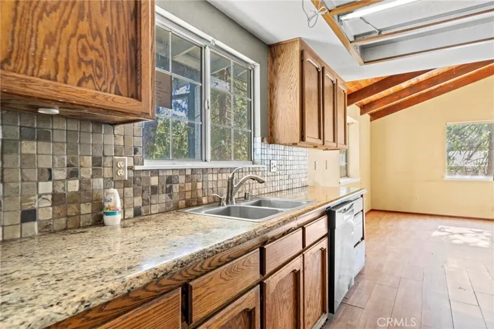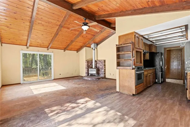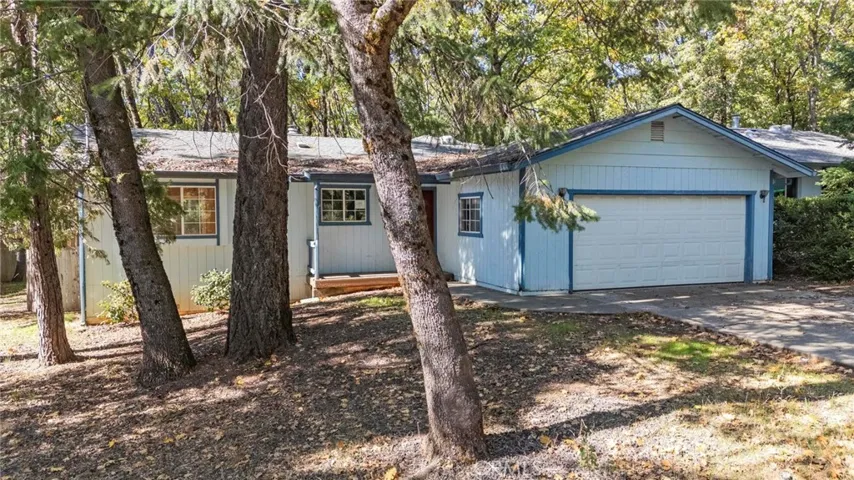 Tucked beneath a canopy of mature trees on a peaceful 0.24-acre lot, this charming 3-bedroom, 2-bath home is a true retreat from the hustle and bustle of everyday life. Built in 1991, the home welcomes you with rustic character and thoughtful design throughout. Step inside and be greeted by vaulted, open-beamed ceilings that add a spacious, lodge-like feel to the main living area. A wood-burning stove set in classic brick, brings warmth and timeless ambiance, making this the perfect space to unwind, gather with loved ones, or enjoy a quiet evening with a good book. The kitchen is well-equipped with a range, range hood, refrigerator, and dishwasher—ready to handle everything from quiet breakfasts to weekend entertaining. The semi-open layout provides just the right balance of connection and privacy between rooms, ideal for both relaxed living and hosting friends or family. Retreat to the primary suite, complete with a ceiling fan and comfortable proportions. Two additional bedrooms offer flexibility for family, guests, hobbies, or remote work. Practical features like indoor laundry hook-ups and an attached 2-car garage add convenience to daily life. Outside, enjoy the peace of the covered front porch, the relaxation of a back deck, and the freedom of a fenced backyard — all set among tall trees that offer shade, privacy, and a strong connection to nature. Whether you’re sipping coffee as the sun rises, barbecuing with friends, or watching the seasons change from the deck, this home invites you to slow down and enjoy life’s simple pleasures. Located in an established neighborhood with a natural setting that feels far from the noise — yet still close to town amenities — this home offers a rare blend of tranquility and convenience. Whether you’re starting fresh, downsizing, or simply craving a place to call your own, this one-of-a-kind property offers warmth, charm, and room to breathe.