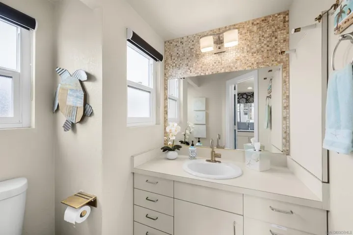 Detached approx. 20 feet from the sands with incredible Bay Views. Located by Mission Bay Yacht club. Newer multiple stories with bedroom and bath main level. Beautiful wood stairs to upper area. Large kitchen and dining room awesome living room with high Ceilings and cozy fireplace. Balcony off the primary with Bay views and dining area. Upper level is the primary bedroom with amazing bathroom with spa tub and separate shower. Perfect outdoor patio space with BBQ and plenty of sitting area and just a stone throw from the sands. Outdoor shower. New Roof, electric shades and skylights. recently tented. Currently a vacation rental and set up for future rental use. 2 car garage and one extra parking space. New photos coming.