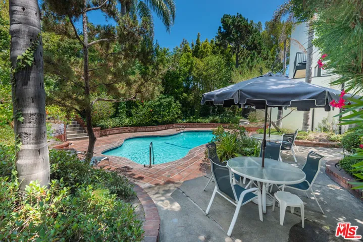 Welcome to this light-filled, top-floor 2-bedroom + 2-bathroom condo offering treetop and peek-a-boo city lights views. Updated with new wall-to-wall natural fiber sea grass carpet and fresh paint throughout, this home features vaulted ceilings, a cozy wood-burning fireplace, and in-unit laundry for added convenience. The spacious primary suite includes a remodeled en-suite bathroom and a large walk-in closet. The galley-style kitchen is remodeled and offers generous cabinet space. Enjoy outdoor living on the extra large balcony. This property also offers two tandem parking spaces, a renovated building exterior, and a convenient location near Century City, Beverly Hills, UCLA, and Fox Studios. The complex boasts resort-style amenities including a pool, spa, sauna, and beautifully landscaped grounds. This is a smoke-free unit.