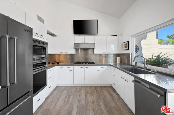 Step inside this beautifully furnished, waterfront home at The Lakes Country Club in Palm Desert, offering the highly sought-after Laramie floor plan and resort-style living perfect for a seasonal desert retreat or full-time residence. The spacious living room features soaring ceilings, recessed lighting, sleek ceiling fans, and a stylish fireplace, while the fully remodeled kitchen boasts new cabinetry, quartz countertops, designer backsplash, premium appliances, and new flooring throughout. Energy-efficient upgrades include double-pane windows, doors, and dual HVAC zones for year-round comfort. The former atrium has been converted into an oversized den or home office with built-ins and a skylight and doubles as a third bedroom with twin Murphy beds. Each bedroom has its own en-suite bath, and the large rear patio invites you to relax and take in tranquil lake views. With world-class golf, racquet sports, fitness, and social amenities, The Lakes Country Club is one of the Coachella Valley’s premier private communities for luxury desert living.