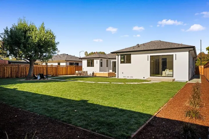 Final Inspection is passed! Welcome to this stunning brand-new single-story home in the heart of Mountain View. 10-year structural warranty! With over 3,300 sq.ft. of living space plus a 450 sq.ft. garage on an expansive 11,000+ sq.ft. lot, this rare find perfectly blends luxury and functionality. The thoughtfully designed open floor plan features 5 bedrooms, including 4 ensuite rooms, and showcases 7 skylights and large sliding glass doors that fill the home with warmth and sunshine. Premium finishes throughout include AB-grade white oak flooring, Marvin windows, 400amp panel, a full Thermador appliance suite, Bespoke cabinetry. With 11-foot high ceilings, custom closets in every bedroom, and seamless indoor-outdoor flow, this home is ideal for both elegant entertaining and everyday comfort. Behind the scenes, no detail was spared, new gas line, whole-house insulation, integrated smart home features, and a water softener system ensure quality and convenience for years to come. Set toward the front of the lot, the property offers an expansive backyard ready for your dream outdoor lifestyle.whether its a pool, garden, or ADU. This residence not only provides modern luxury but also exceptional investment opportunity in one of Silicon Valleys most sought-after neighborhoods.