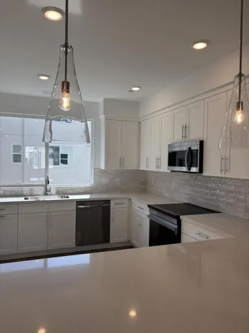 Welcome to this beautiful, brand-new three-story home in the master-planned community of FivePoint of Valencia which is in close proximity to Six Flags Magic Mountain, top-rated schools, beautiful grounds, and walking and biking paths.This 3-bedroom, 3.5-bathroom townhouse is approximately 1,987 square feet with open living space. This modern residence features a first-floor bedroom complete with a bathroom. The second floor includes an open-concept kitchen, dining area, and Great Room. The third floor includes a luxurious suite with a walk-in closet and bath, as well as an additional secondary suite. There is a laundry room on the third floor.The residents can enjoy the resort style community amenities, including pools, a spa, clubhouse, scenic trails, gardens, and a playground. Also take advantage of the Solar Panels offering you energy savings! The additional highlights include a 2-car garage with EV charger.