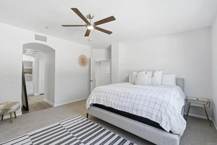 Discover this beautifully upgraded, coveted End-Unit townhome in the heart of Aviara, offering the perfect blend of privacy, comfort, and modern coastal style. Tucked away with no neighbors behind, this 3-bedroom + office, 2.5-bath residence boasts 2,166 sq. ft of open-concept living—the largest floor plan in the Brindisi community. + the 2 car attached garage we all desire! Step inside to bright, airy interiors enhanced by LED recessed lighting, luxury vinyl plank flooring, and plantation shutters. The chef’s kitchen features sleek quartz countertops, stainless steel appliances, and a seamless flow into the dining and living areas—ideal for entertaining or everyday living. Upstairs, the remodeled primary suite feels like a private retreat with a spa-inspired bathroom showcasing a large walk-in shower and custom built-in shelving and drawers. Additional upgrades include granite countertops (from a single slab), MOEN brushed nickel fixtures, KOEHLER sinks, and remote-controlled ceiling fans in the kitchen/dining area and primary bedroom. Enjoy the outdoors in your private, low maintenance backyard—complete with lime and lemon trees that bear fruit year-round. A new fence (2024) and Rheem 50-gallon water heater (2021) add peace of mind. Located in a secure gated community with resort-style amenities including a pool and spa, this home offers easy access to top-rated Carlsbad schools, Aviara Community Park, Shopping and the area’s best beaches—sand just five minutes away. HOA membership includes discounts & benefits at nearby Park Hyatt Aviara! With thoughtful upgrades, a prime end-unit location, and designer touches throughout, this coastal gem truly checks all the boxes.