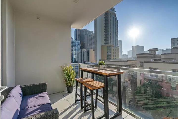 Modern elegance meets downtown vibrance in this stunning Aria residence, located in the serene Cortez Hill neighborhood. Bright and airy with a west-facing orientation, this home captures sweeping city views of the Downtown skyline, the historic El Cortez & spectacular sunsets – a perfect spot to unwind after a busy day. Designed for effortless living, the open-concept layout features high ceilings, oversized windows, and seamless flow between the living, dining, and kitchen areas—ideal for entertaining or relaxation. The contemporary kitchen impresses with stainless steel appliances, sleek quartz countertops, and ample storage. Meanwhile, the spacious bedroom features a large walk-in closet and convenient dual access to the bathroom. Additional highlights include an in-unit washer and dryer, assigned underground parking, and a rare private storage room, located directly in front of the parking space. Aria is a VA & FHA approved community, and residents enjoy an exceptional amenity collection, including a fully equipped fitness center, a 70-foot lap pool and spa, a stylish clubroom with a theatre area featuring lounge seating, a wet bar, and a dining/meeting area. With its peaceful, residential feel and close proximity to Balboa Park, Little Italy, the Gaslamp Quarter, Tweet Street Park, bus and trolley transportation, Petco Park, East Village, and the bayfront, this home offers the perfect balance of calm and connectivity. Aria — where contemporary design, city views, and resort-style living come together beautifully in the heart of Cortez Hill of Downtown San Diego. Aria is a VA & FHA approved community, and residents enjoy an exceptional amenity collection, including a fully equipped fitness center, a 70-foot lap pool and spa, a stylish clubroom with a theatre area featuring lounge seating, a wet bar, and a dining/meeting area. With its peaceful, residential feel and close proximity to Balboa Park, Little Italy, the Gaslamp Quarter, Tweet Street Park, bus and trolley transportation, Petco Park, East Village, and the bayfront, this home offers the perfect balance of calm and connectivity. Aria — where contemporary design, city views, and resort-style living come together beautifully in the heart of Cortez Hill of Downtown San Diego.