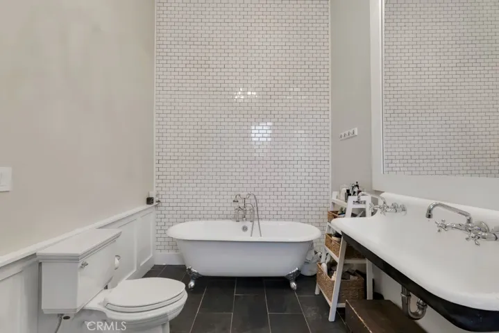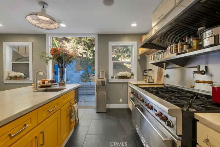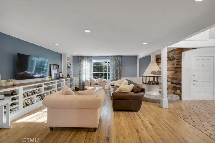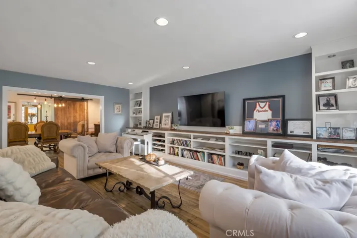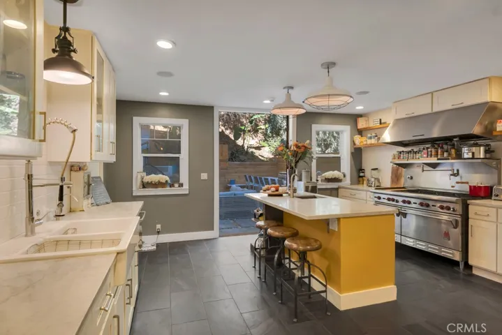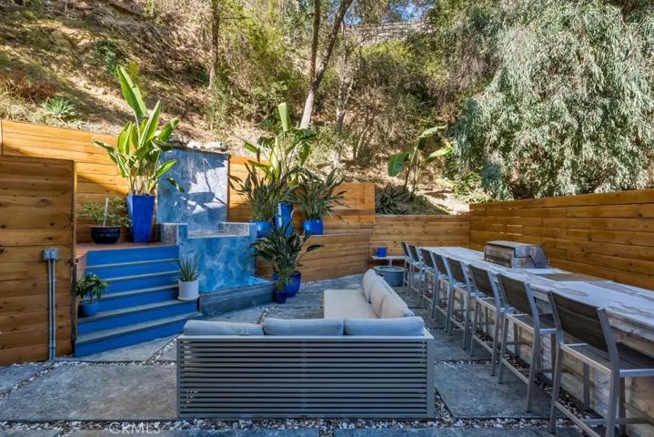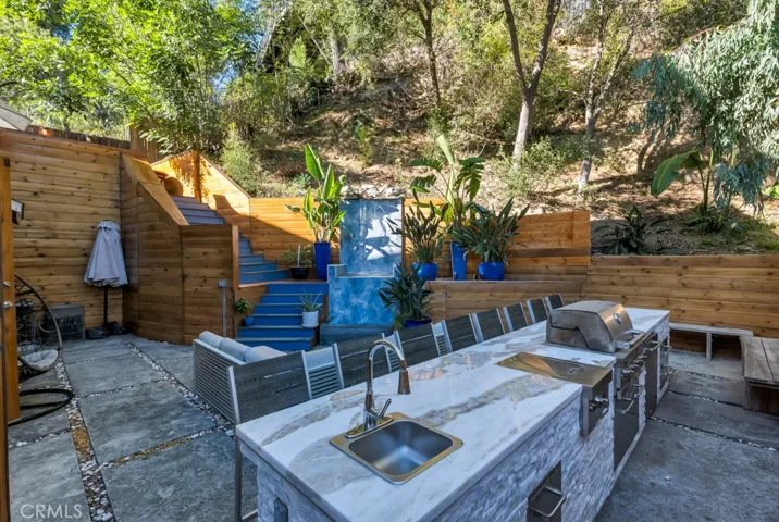 Welcome to Your Storybook Modern Farmhouse Retreat in Woodland Hills! Tucked away amid the natural beauty of Woodland Hills, this storybook modern farmhouse blends rustic charm with contemporary elegance. Every detail has been thoughtfully curated to create a warm, inviting, and luxurious home.The heart of the home is the stunning open-concept chef’s kitchen, featuring Carrera marble countertops, abundant cabinet and counter space, a double farmhouse sink plus a second prep sink, and a commercial-grade Wolf 8-burner range with double ovens and a custom hood. A full-height tiled backsplash, reclaimed wood barn door, and designer farmhouse light fixtures complete the picture-perfect look. The formal dining room opens seamlessly to the spacious living room, where reclaimed wood accents and a circular vintage fireplace set a cozy yet sophisticated tone. Custom wood flooring flows throughout, creating a sense of continuity and warmth. Upstairs, the primary suite offers a peaceful retreat with a large walk-in closet and a spa-inspired ensuite bathroom featuring a soaking tub, walk-in double shower, and custom finishes. Three additional bedrooms share an updated farmhouse-style bathroom, while a fifth room serves as a perfect space for a bedroom, office, gym, playroom, or meditation area featuring two sky lights providing beautiful sunlight and direct access to a private outdoor deck. Step outside to discover a true backyard sanctuary. Enjoy a cascading waterfall, expansive outdoor BBQ area with quartzite countertops, stainless steel sink, refrigerator, burner and seating for ten. Multiple lounging and dining areas invite you to entertain or unwind surrounded by nature. A second elevated terrace is ideal for morning yoga, coffee, or quiet reflection. Additional features include: Laundry area and powder room. Two-car attached garage, with EV charger. Tranquil views from every room in the house, an enclosed front and backyard sanctuary, newer AC unit, dual AC, newer water heater, Aquasana full-house and reverse osmosis water filtration systems, custom blackout curtains, vintage glass door knobs, and upgraded ducting. Rarely does a home with this much character, quality, and serenity come on the market. Conveniently located near The Village at Woodland Hills, The Commons at Calabasas, top-rated schools, fine dining, entertainment, and just minutes from the beach. Experience the perfect balance of nature, elegance, and modern living — your dream home awaits!