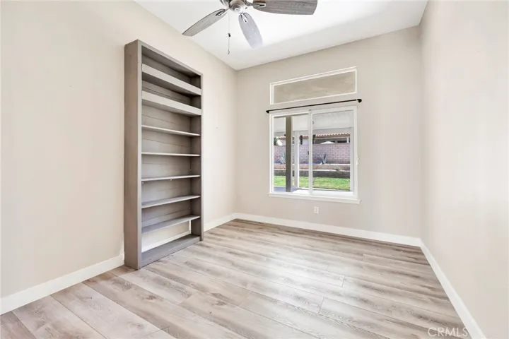The primary suite features a walk-in closet, a luxurious en suite bathroom, and private exterior access. The second bedroom is spacious and private, offering direct access to its own bathroom. The third room functions perfectly as an office or guest bedroom, conveniently located near a third full guest bath.