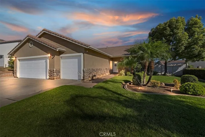 This is a must see beautiful single-story home that features 4 bedrooms 3 bathrooms. Open spacious floor plan, oversized living room, large dining area with a fireplace, kitchen with granite counter tops, center island, and a breakfast bar. Spacious guest bedroom with a private full bathroom. Bright and airy master bedroom with a private ensuite, and double sinks. Indoor laundry room with a sink. Backyard features mature grass and 2 alumawood patio covers that are great for entertaining. 3 car garage with direct access. Long concrete driveway with ample amount of parking. Great curb appeal. Easy access to the freeways. Great for a first-time home buyer.