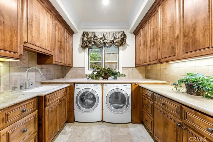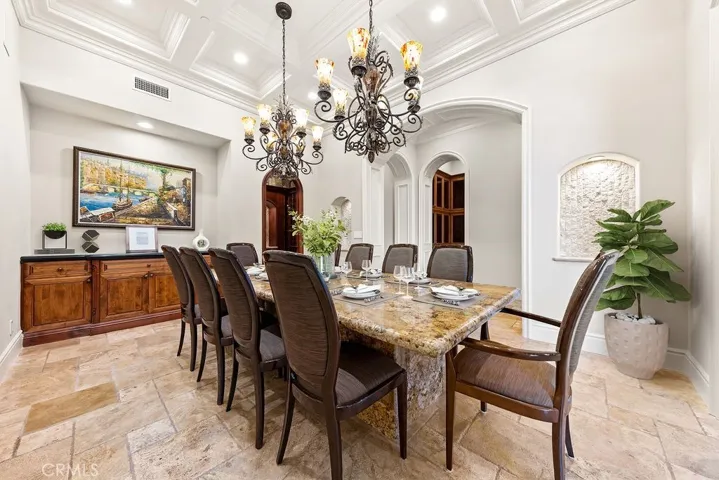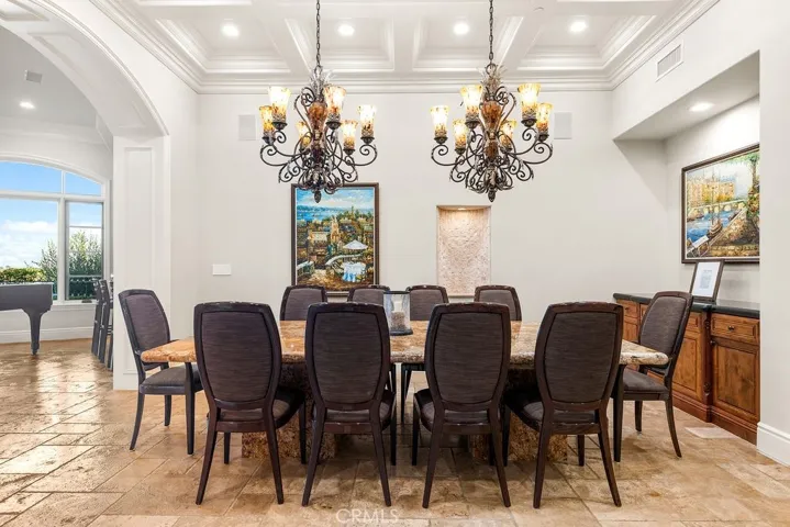 Welcome to an exceptionally rare and elegantly custom designed home, privately tucked away at the end of a serene cul-de-sac with gentle ocean breezes in the distance. Built in 2008, this Single-Story residence offers 5,650 square feet of living space, situated on a distinctive 26,000 square foot lot, with an estimated usable area of about 16,000 square feet. This Tuscan inspired Mediterranean estate combines timeless sophistication with peaceful seclusion in the prestigious Monarch Bay Terrace neighborhood. The home features its own private gate, with lush tropical landscaping on both sides of the entrance, with a long private driveway leading to a three car garage and tranquil entry courtyard. Step inside to discover soaring 12 ft ceilings that enhance the open and luxurious layout. This exquisite home features 5 bedrooms and 6.5 bathrooms, each room with its own an en-suite bath, there is also a bath for the pool and a half bath for guests. Additional highlights include a library, a luxurious wainscoted theater, and a walk in wine cellar. The spacious primary suite boasts dual walk in closets and lavish soaking tub with separate shower, and two private toilet rooms one on each side. The gourmet kitchen is equipped with top of the line appliances, an oversized built in side by side refrigerator, custom cabinetry, and a large walk in pantry. The expansive great room offers two dining areas, wet bar, walk in wine cellar room and dual oversized double glass doors opening to the backyard. Throughout the home, high quality solid wood doors and premium windows offering excellent sound insulation and airtight sealing for maximum comfort and quiet. The resort style backyard is an entertainer’s dream, featuring a built-in BBQ, a stunning beach entry pool with cascading rock waterfall. A stone pathway leads to an upper terrace with a spa and multiple fruit trees, where breathtaking mountain and city views stretch endlessly. The three-car garage is finished with elegant marble epoxy flooring and extra tall garage doors, ideal for SUVs or luxury cars. Only minutes from the Dana Point Harbor and Laguna Beach! This residence truly defines Southern California coastal luxury living. Some photos are virtually staged.