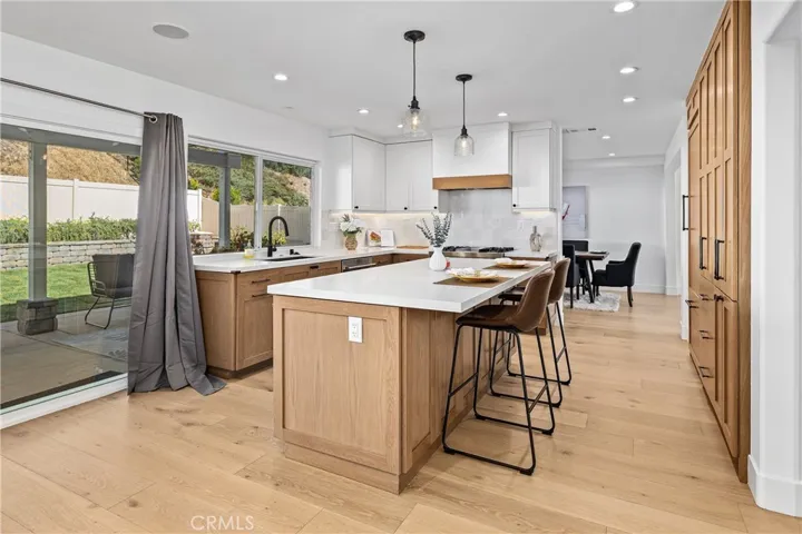 Comprehensively remodeled in 2023, the home features a gourmet chef’s kitchen with custom cabinetry, sleek quartz countertops, and a full suite of premium JennAir appliances — the perfect stage for entertaining or enjoying everyday meals in style. Rich hardwood floors flow seamlessly through the main living spaces, anchored by a cozy gas fireplace and custom built-ins that add warmth and architectural character.