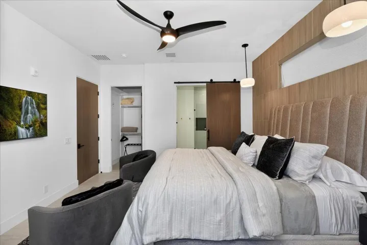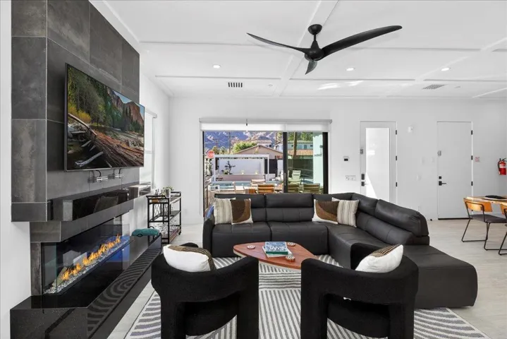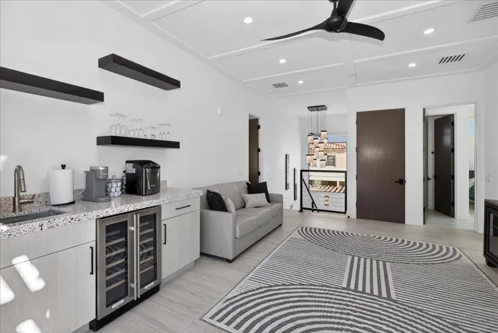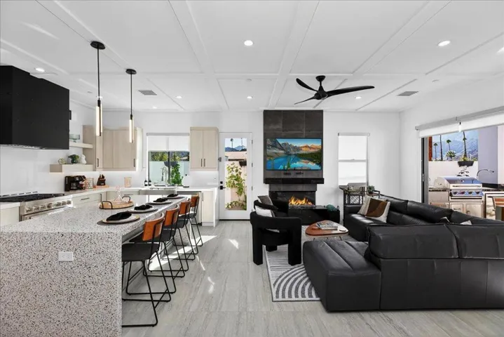 Escape to this modern desert oasis featuring 4 ensuite bedrooms including dual masters, a resort-style pool with swim-up bar, sunken firepit lounge with TV, BBQ area, and putting green. Enjoy high ceilings, quartz finishes, and seamless indoor-outdoor living with mountain views. Perfect for families or groups seeking luxury, relaxation, and entertainment in a private gated retreat.This property is new construction and the photos are mock ups from the architect. Actual photos of home to follow.